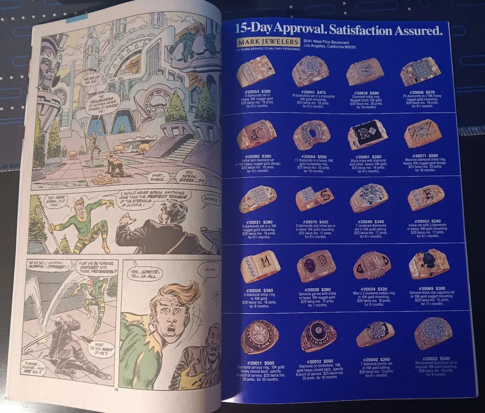 - Key Notes: Features the Eternals and the mysterious disappearance of Olympia. This rare variant copy includes the Mark Jewelers insert.