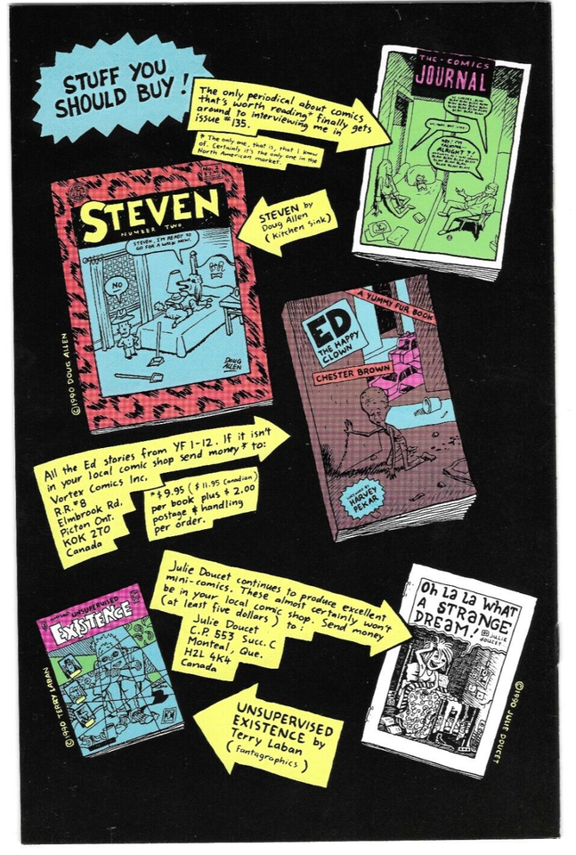 - Key Notes: A key issue from the classic 80s/90s independent comics scene. Features a chapter of the "Ed the Happy Clown" graphic novel.